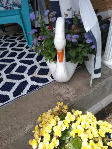 See below for photos of lots of our flowers including those planted in a silly goose! My daughter-in-law bought me two of these years ago and the plants seem happy!